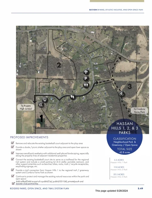 April 11th, 2024 - The Rogers Parks and Recreation Advisory Commission held a public meeting concerning the consideration of an update to the Hassan Hills Park Plan. All interested parties were invited to attend the public meeting. Comments on the proposed park plan were heard.