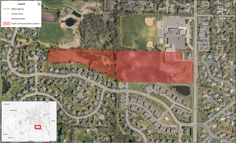 The City of Rogers has awarded contracts for the construction of ball fields and ice rinks and fields at South Community Park. Construction is to start in August of 2023. There will be four youth ball fields and one large multipurpose field when complete. Ball fields will not be ready for use until the fall of 2024 at the earliest.