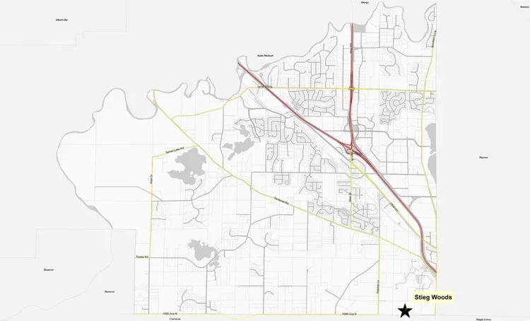 Minnesota Land Trust, which works with the City of Rogers to care for similar habitat at nearby Henry’s Woods, will help to manage the land after acquisition. Their members will make an annual assessment of the forest’s condition and connect with City staff to coordinate a plan of action. Management will consist primarily of work by City staff but may also include educational volunteer events like buckthorn busts and garlic mustard pulls. The remaining land on the parcel (26.91 acres cultivated vegetation/12-acres of wetland- not part of this ask), will be purchased by the City for restoration, potential development, and the proposed CSAH-117 extension. Along with CSAH-117, Rush Creek Regional Trail (RCRT) will be constructed by Three Rivers Park District south of the road, near Stieg Woods, and a natural surface trail connection will be constructed from Stieg Woods to RCRT at that time. This program requests funds for wetland delineation on the strip of agricultural land (to be purchased by the City) between RCRT and Stieg Woods, and its subsequent restoration to suitable habitat type(s) in order enhance this valuable connection between Rush Creek's wetlands and Stieg Woods.
