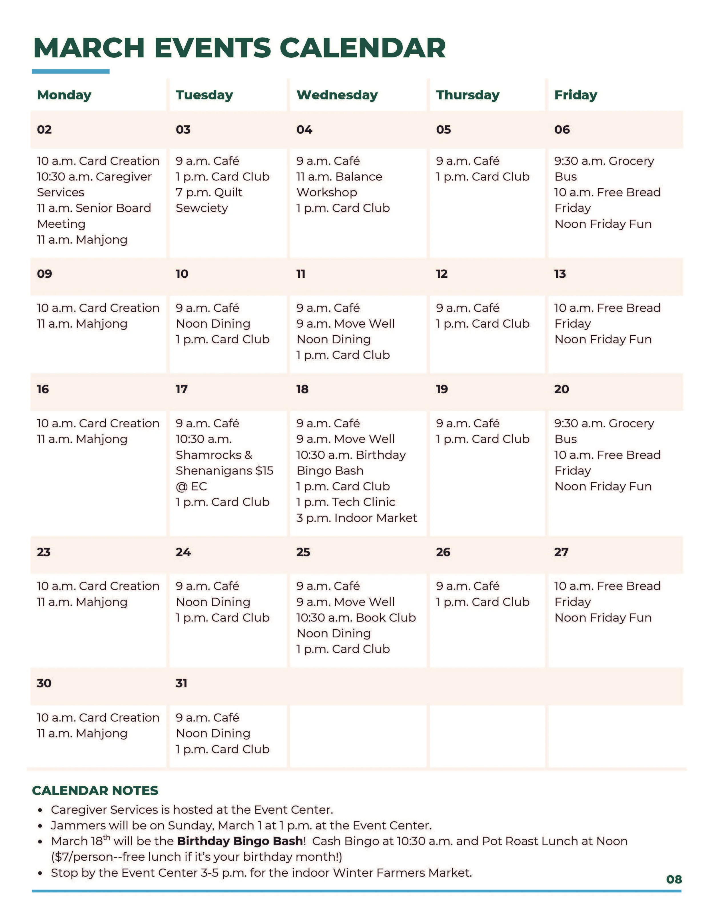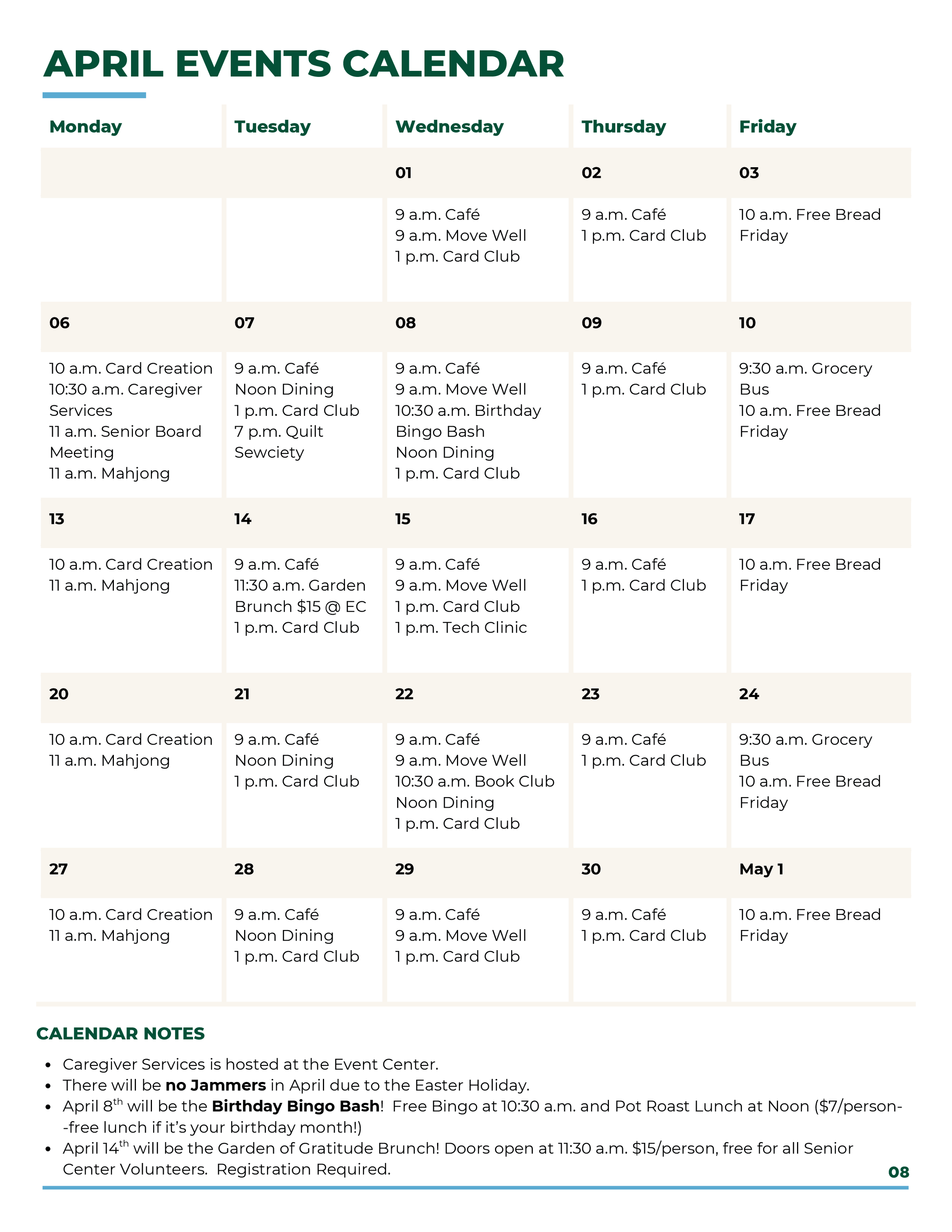 View Past Senior Activities Calendar Here